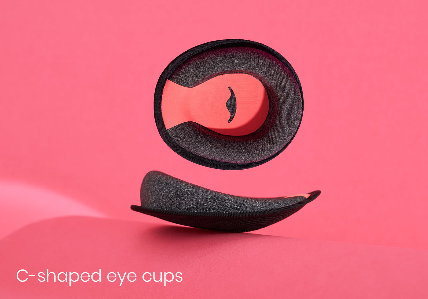 SOUND Mask's C-shaped eye cups sit completely flat against your temple, providing zero eye pressure while delivering true 100% blackout — even when you're sleeping on your side.