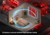 Unlike traditional products, it’s designed to be positioned anywhere in the room. So you can place it between you and the noises disrupting your sleep, then control it from the comfort of your bed.